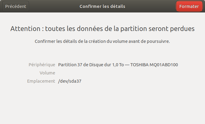 - Le formatage de ces conteneurs en type de partition EXT4 permettra l'installation de votre Ubuntu ou de vos données personnelles dans cet espace sécurisé.