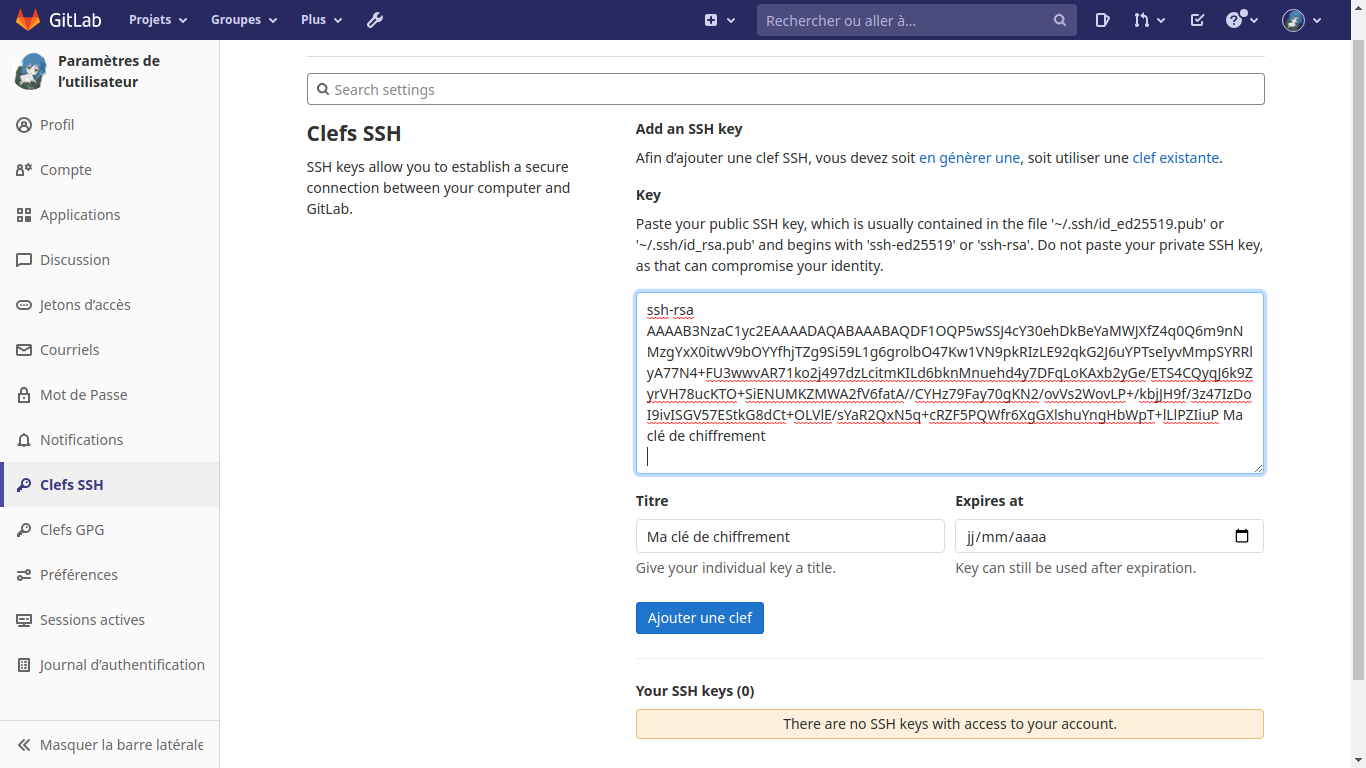 Vous pouvez définir vos échanges avec GitLab une configuration plus sécurisée avec git en activant une communication chiffrée