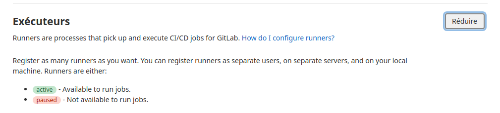 Dans Paramètres/Intégration et livraison/Exécuteurs mettre en pause le runner nouvellement créé pour votre projet