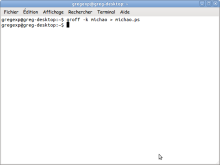 Sur un deuxième bureau virtuel, ouvrez un terminal où vous transformez votre fichier d'entrée avec la commande groff.