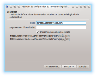 En nom d'hôte saisissez : carddav.address.yahoo.com.