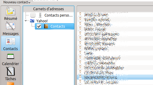 Pour synchroniser vos contacts avec votre compte Yahoo, sélectionnez le module Contacts, menu Fichier → nouveau → Carnet d'adresse (ou via un clic droit)