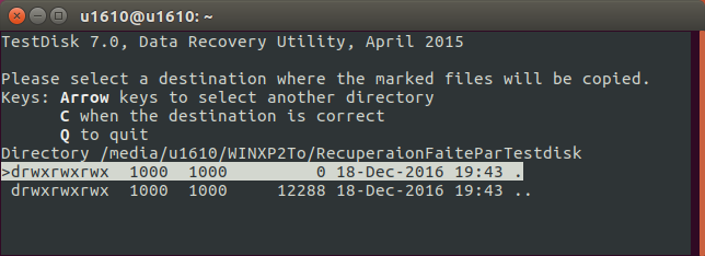 il ne reste plus qu'à sélectionner le répertoire .., lancer la copie avec la touche C puis patienter.