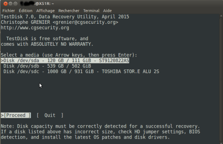 TestDisk étant disponible depuis les dépôt officiels, il n'y a aucun problème à l'installer et l'utiliser depuis une session live Ubuntu afin d'éviter toute écriture des données sur le support concerné, en particulier si il contient une partition système ou montée automatiquement.