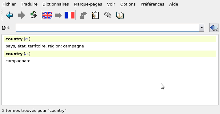 Wordtrans est une application graphique qui permet de chercher des mots dans plusieurs dictionnaires. Elle peut aussi traduire les mots sélectionnés à l'aide de la souris.