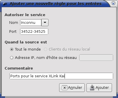 sudo mkdir /usr/share/xlink-kai # Création du répertoire d'installation sudo cp kaid /usr/share/xlink-kai # Copie de l'exécutable vers le répertoire d'installation sudo cp kaid.conf /usr/share/xlink-kai # Copie du fichier de configuration vers le répertoire d'installation